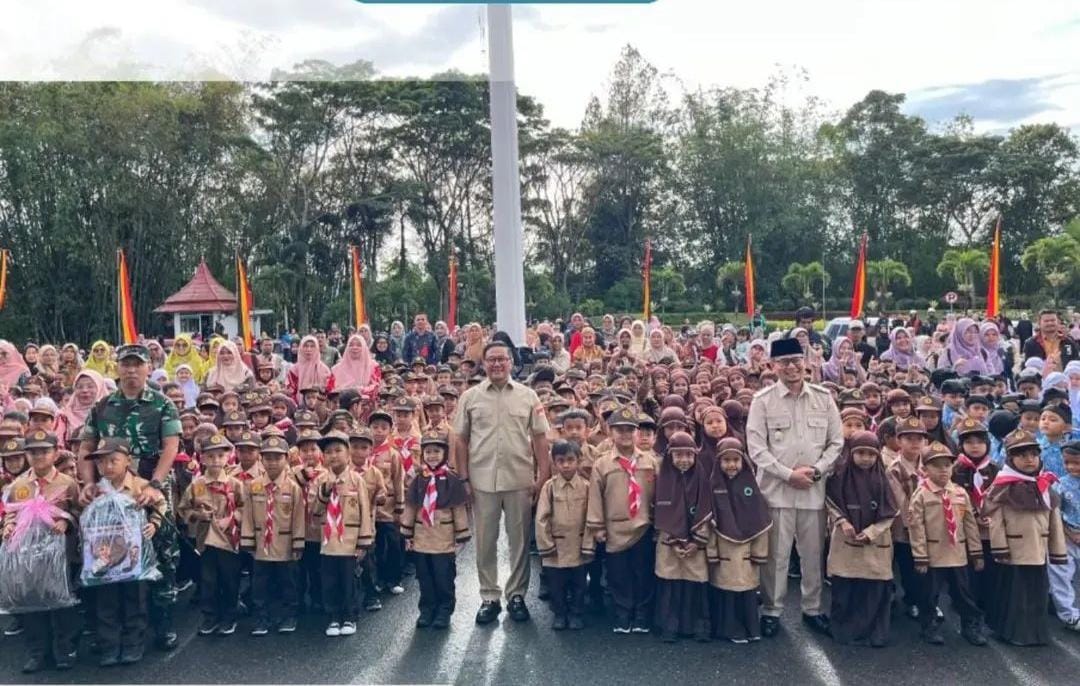 Bukittinggi,Infosumbar24.com | Wali Kota Bukittinggi, Ramlan Nurmatias serahkan secara simbolis perlengkapan sekolah gratis kepada seluruh siswa Sekolah Dasar (SD) negeri dan swasta di Kota Bukittinggi. Penyerahan ini berlangsung di halaman Balai Kota, Kamis, 11 September 2025.