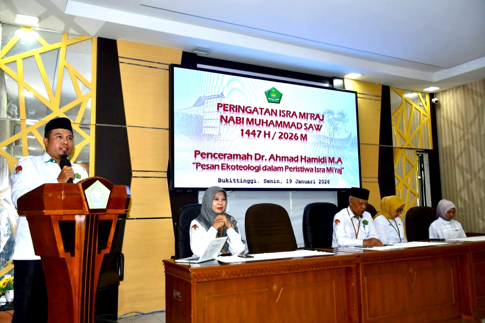 Peringatan Isra’ Mi’raj Nabi Muhammad SAW 1447 Hijriah di lingkungan Kantor Kementerian Agama (Kemenag) Kota Bukittinggi berlangsung penuh makna. Tidak sebatas seremonial keagamaan, momentum sakral ini dimaknai secara progresif sebagai titik tolak membangun kesadaran ekologis berbasis nilai-nilai Islam atau ekoteologi.