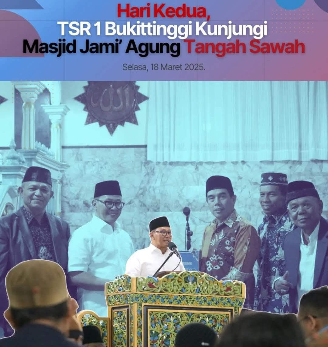 Bukittinggi,Infosumbar.com |Tim Safari Ramadhan (TSR)1 Kota Bukittinggi pada hari kedua, kunjungi Masjid Jami’ Agung Tengah Sawah, atau yang biasa dikenal dengan Masjid Agung, Selasa, 18 Maret 2025. Tim dipimpin Wali Kota Bukittinggi, didampingi Wakil Ketua DPRD dan sejumlah Kepala SKPD.