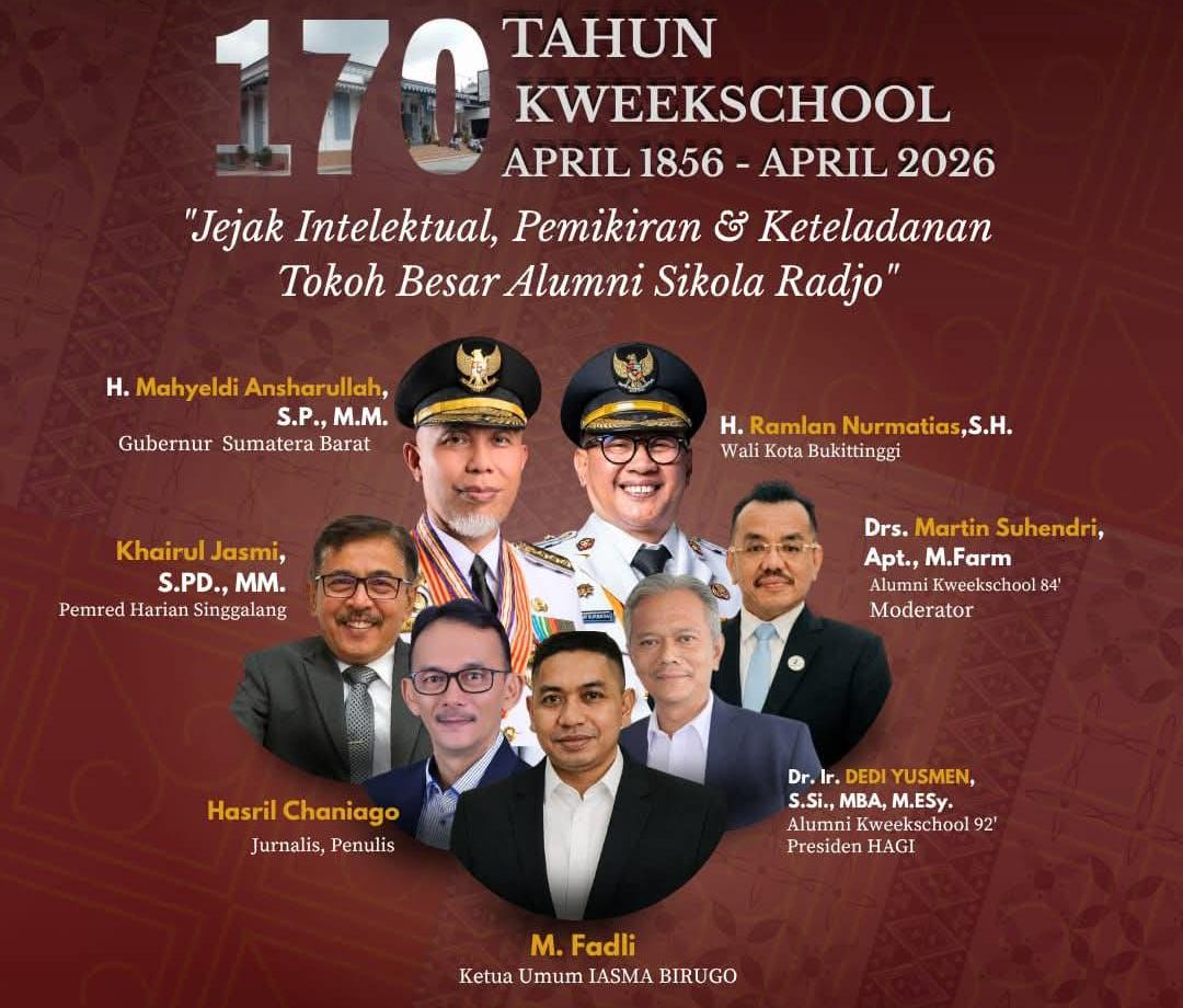 Bukittinggi,Infosumbar24.com |Hasril Chaniago tampil sebagai narasumber dalam seminar kebangsaan peringatan 170 tahun Kweek School di SMA Negeri 2 Bukittinggi, Sabtu (25/4/2026).