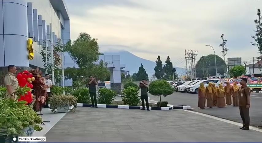 Bukittinggi,Infosumbar24.com | Walikota Bukittinggi Ramlan Nurmatias, pimpin apel dalam rangka memperingati Hari Ulang Tahun RSUD ke-5. Kegiatan ini diikuti oleh seluruh kepala SKPD, direktur, dokter dan staf RSUD Bukittingi, di halaman RSUD Kota Bukittinggi, Selasa, 20 Januari 2026.