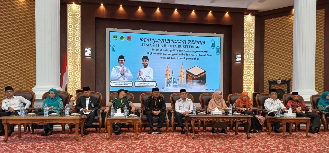 Bukittinggi,Infosumbar24.com |Pemerintah Kota Bukittinggi sambut secara resmi kepulangan jamaah haji Kota Bukittinggi tahun 1446 H. Kegiatan ini berlangsung di balairung rumah dinas walikota, Rabu, 23 Juli 2025.