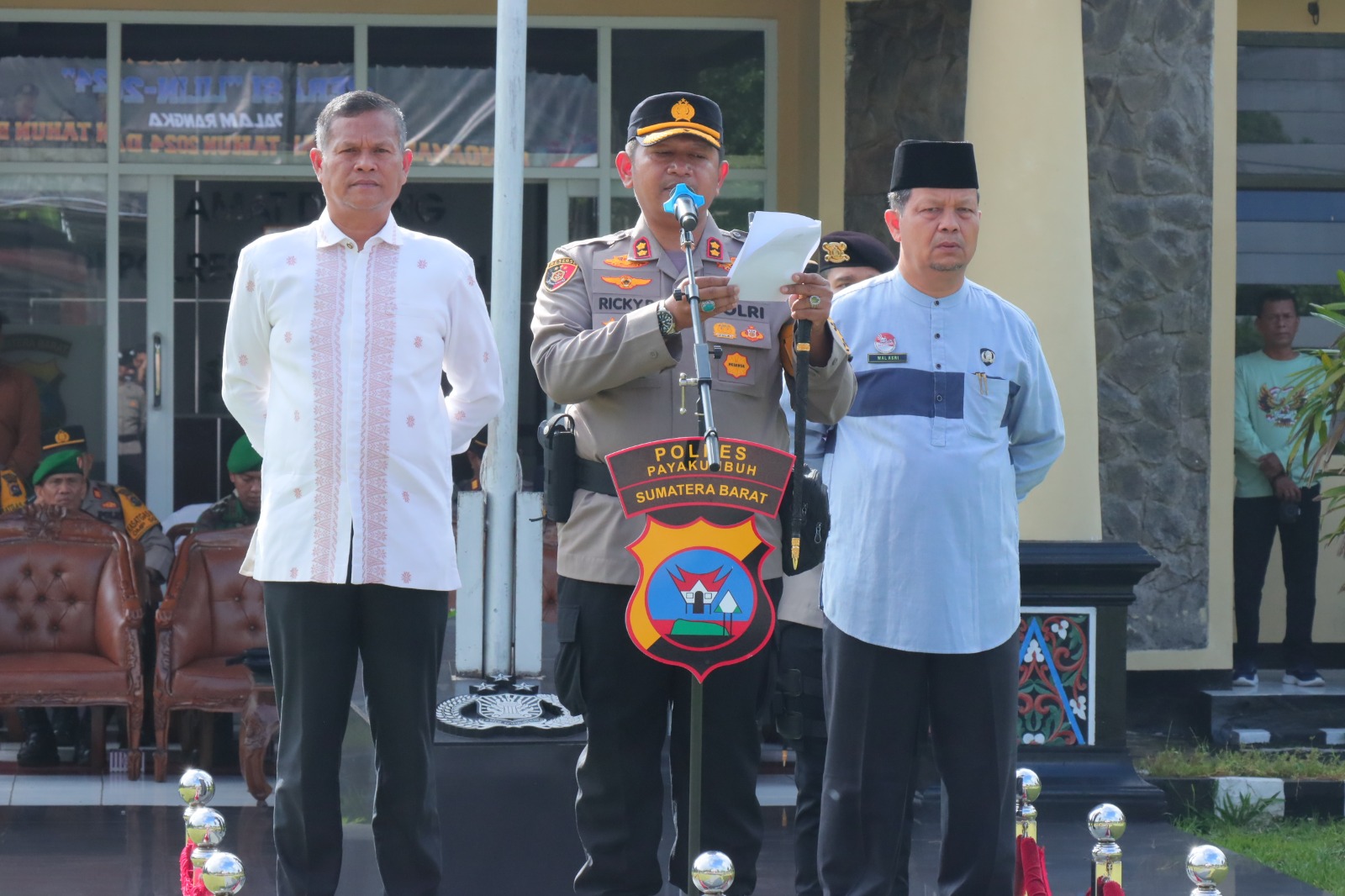 Kapolres Payakumbuh AKBP Ricky Ricardo, S.I.K.S.H.M.H didampingi oleh yang mewakili Pj Walikota Payakumbuh dan Bupati 50 Kota bertindak selaku pimpinan apel diikuti oleh sejumlah unsur Forkopimda, Personil TNI-Polri serta unsur terkait lainnya.