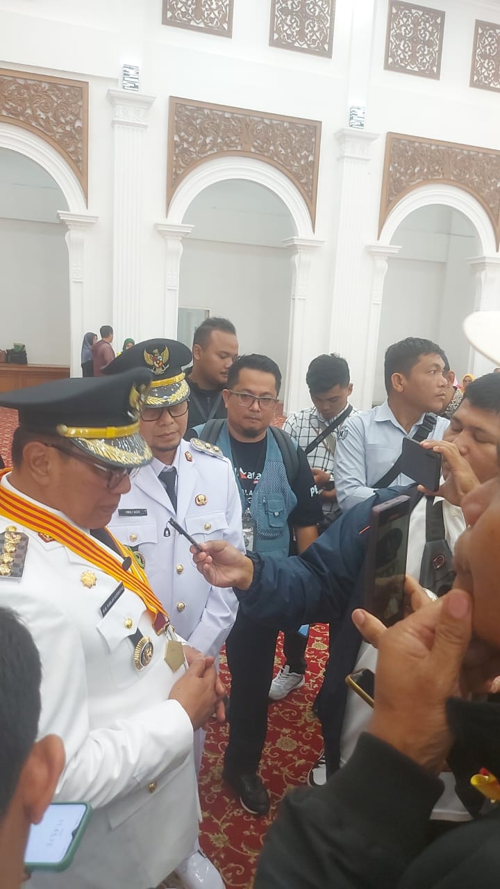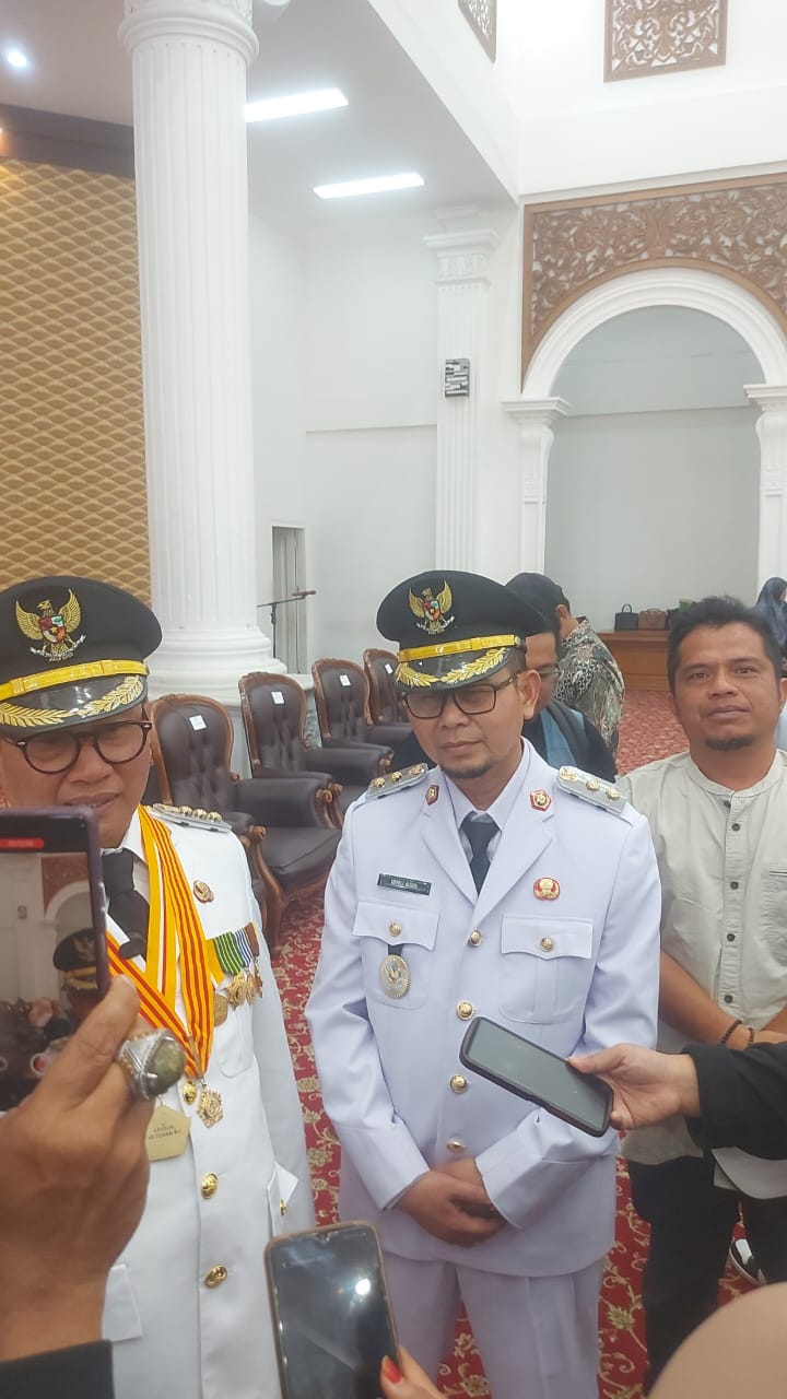 Setelah acara Sertijab tampak Walikota Ramlan didampingi Wakil Walikota 2025-2030 Ibnu Asis diserbu beberapa pertanyaan oleh awak media.