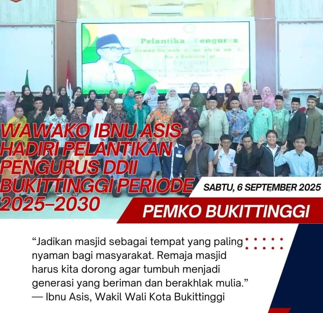 Wawako Ibnu Asis Hadiri Pelantikan Pengurus DDII Bukittinggi Periode 2025–2030